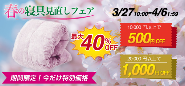 【最大40%OFF】春の寝具見直しフェア開催!お得なクーポン配布中